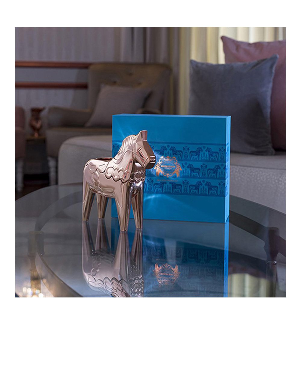 Each Absolut Elyx Copper Dala Horse is made of copper-plated brass and sealed with an FDA-approved food-safe lacquer and is presented in a beautiful ready-to-gift presentation box.